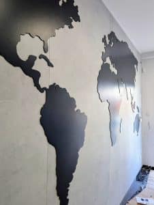Mapa jest z precyzyjnie frezowanego PCV, co nadaje jej lekkości, trwałości i nowoczesnego charakteru. To świetna propozycja dla miejsc, które chcą wyróżnić swoje wnętrza i postawić na praktyczną dekorację z edukacyjnym akcentem.